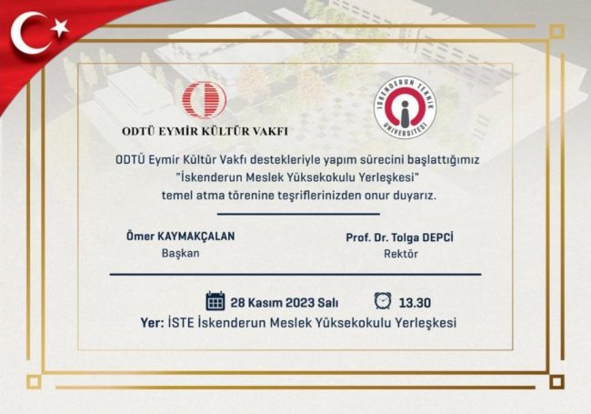 İSTE İskenderun M.Y.O Temel Atma Törenine Davet